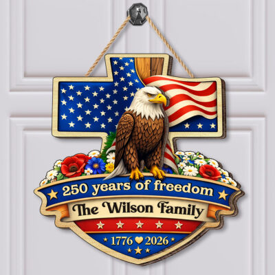 Personalized 250 Years of Freedom Eagle Cross Wooden Hanging Sign
